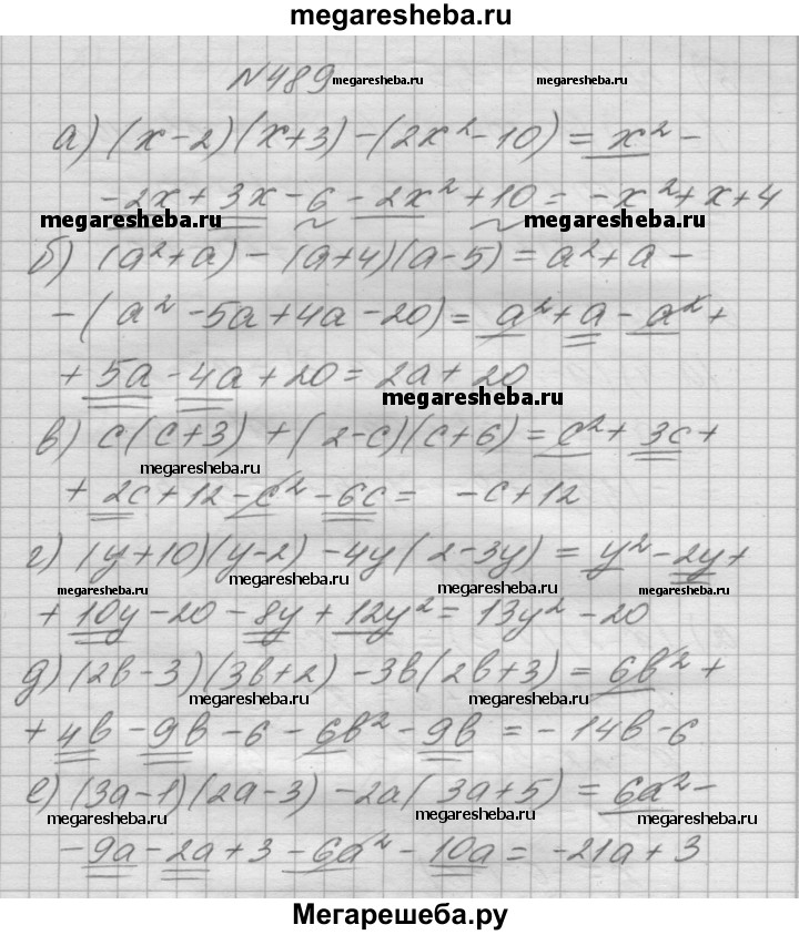 Подробный решебник (ГДЗ) по Алгебре за 7 (седьмой) класс - готовый ответ упражнение - 489. Авторы учебника: Бунимович, Кузнецова, Минаева. Издательство: Просвещение 2017.