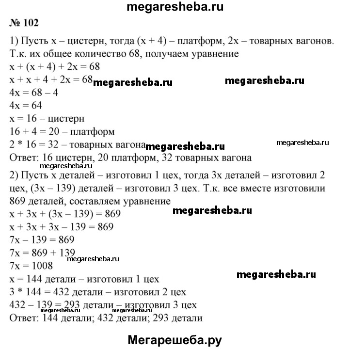 ГДЗ по алгебре 7 класс Колягин Базовый уровень упражнение - 102