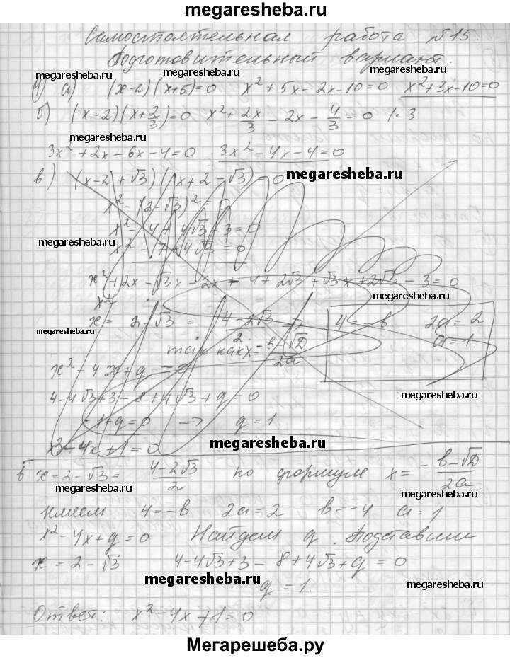 Подробный решебник (ГДЗ) по Алгебре за 8 (восьмой) класс дидактические материалы - готовый ответ самостоятельные работы СР-15 подготовительный вариант - 1. Авторы учебника: Феоктистов, Углубленный уровень. Издательство: Мнемозина 2018.