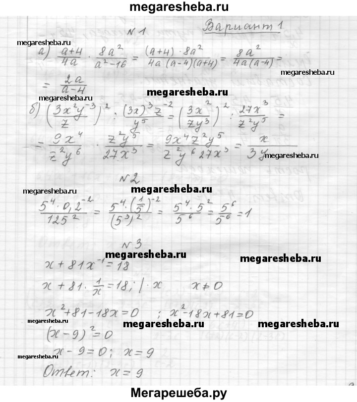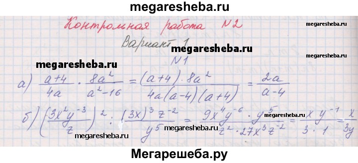 Подробный решебник (ГДЗ) по Алгебре за 8 (восьмой) класс контрольные работы - готовый ответ КР-2. вариант - 1. Авторы учебника: Александрова, Базовый уровень. Издательство: Мнемозина 2016.