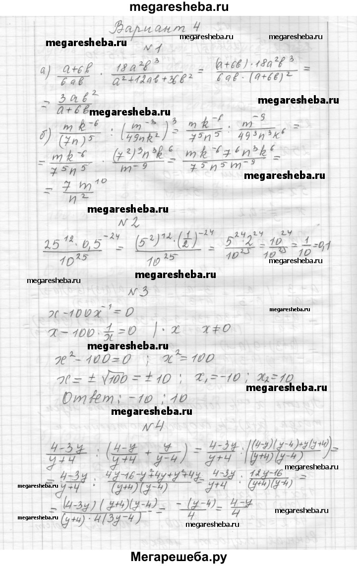 ГДЗ по алгебре 8 класс Александрова контрольные работы Базовый уровень КР-2. вариант - 4