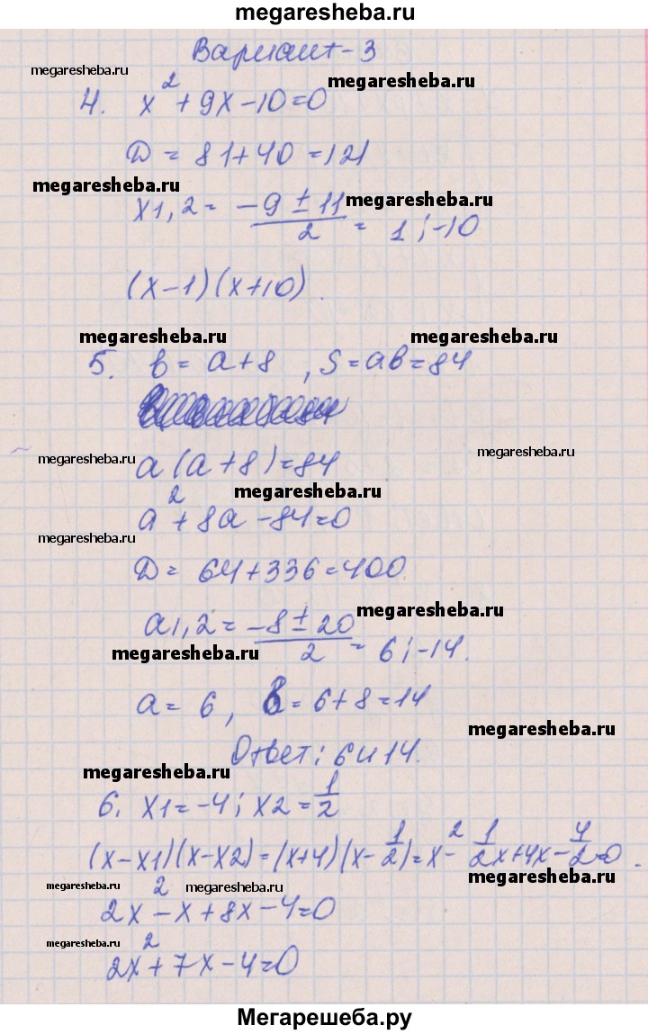 ГДЗ по алгебре 8 класс Кузнецова контрольные работы КР-4. вариант - 3