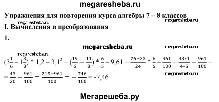 Подробный решебник (ГДЗ) по Алгебре за 8 (восьмой) класс рабочая тетрадь - готовый ответ Упражнения для повторения вычисления и преобразования - 1. Авторы учебника: Колягин, Ткачева, Федорова. Издательство: Просвещение 2016-2023.