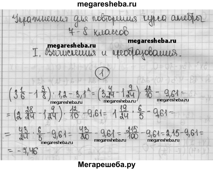ГДЗ по алгебре 8 класс Колягин рабочая тетрадь Упражнения для повторения вычисления и преобразования - 1