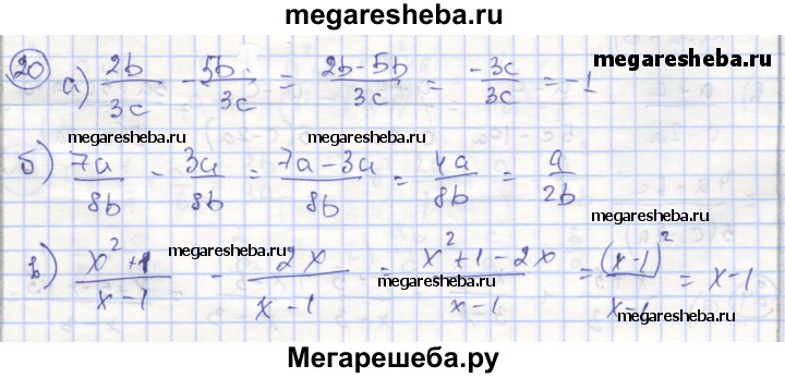 Подробный решебник (ГДЗ) по Алгебре за 8 (восьмой) класс рабочая тетрадь - готовый ответ упражнение - 20. Авторы учебника: Минаева, Рослова. Издательство: Просвещение 2017.