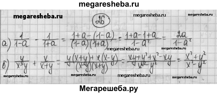 Подробный решебник (ГДЗ) по Алгебре за 8 (восьмой) класс рабочая тетрадь - готовый ответ упражнение - 26. Авторы учебника: Минаева, Рослова. Издательство: Просвещение 2017.