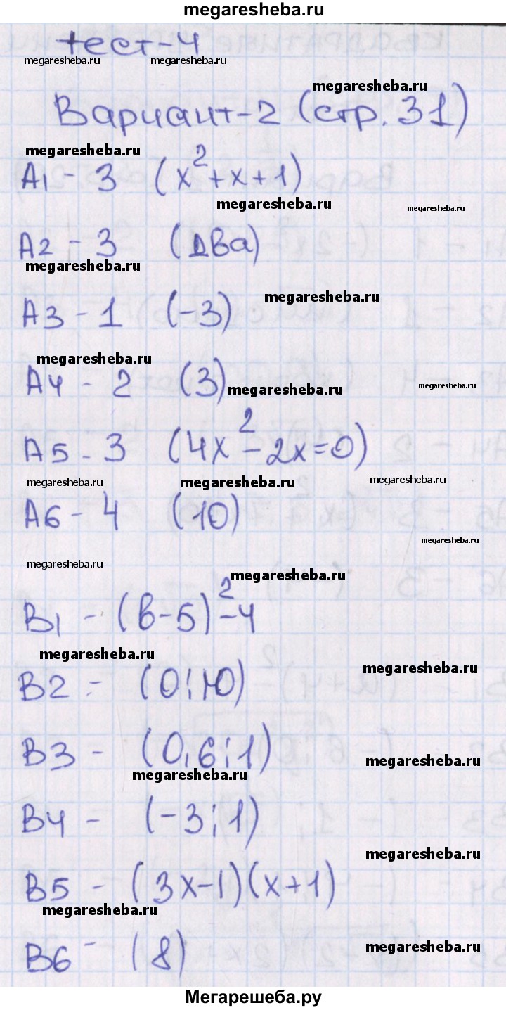 ГДЗ по алгебре 8 класс Чулков тематические тесты тест 4. вариант - 2