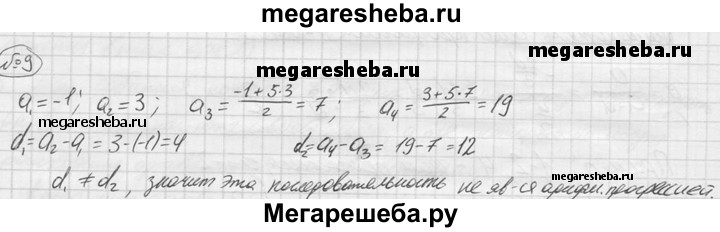 9. Числовая последовательность задана рекуррентным способом: формулой аn + 2= (an+5an+1)/2 и условиями а1 = -1, а2 = 3. Выяснить, является ли эта последовательность арифметической прогрессией.
