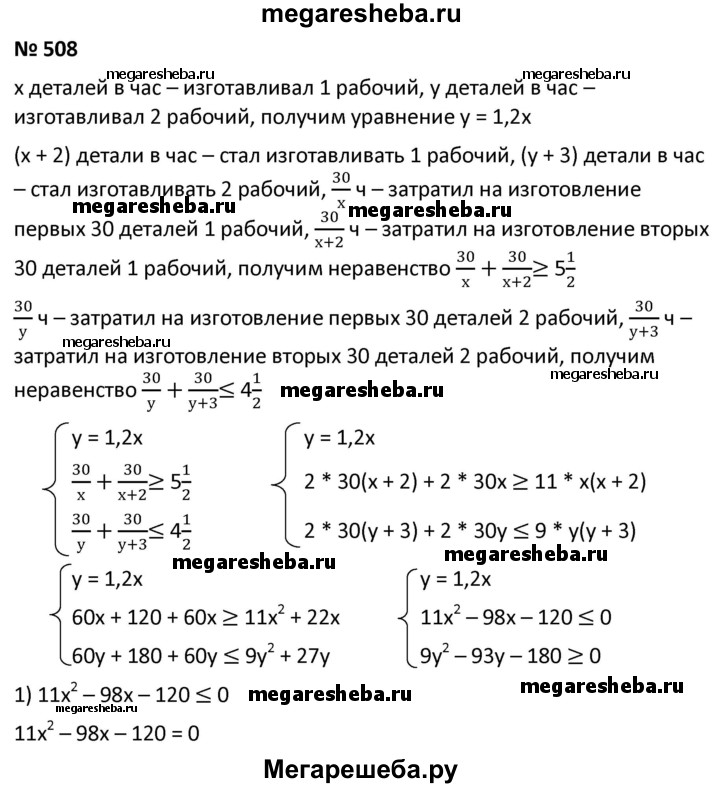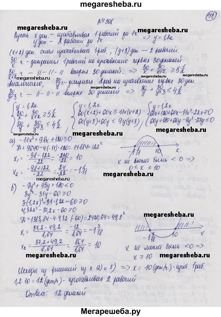 Подробный решебник (ГДЗ) по Алгебре за 9 (девятый) класс - готовый ответ упражнение - 508. Авторы учебника: Мерзляк, Полонский, Якир. Издательство: Вентана-граф 2016-2023.