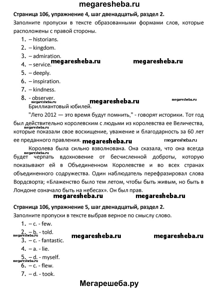Подробный решебник (ГДЗ) по Английскому языку за 10 (десятый) класс Rainbow - готовый ответ страница - 106. Авторы учебника: Афанасьева, Михеева, Баранова, Базовый уровень. Издательство: Дрофа 2016.