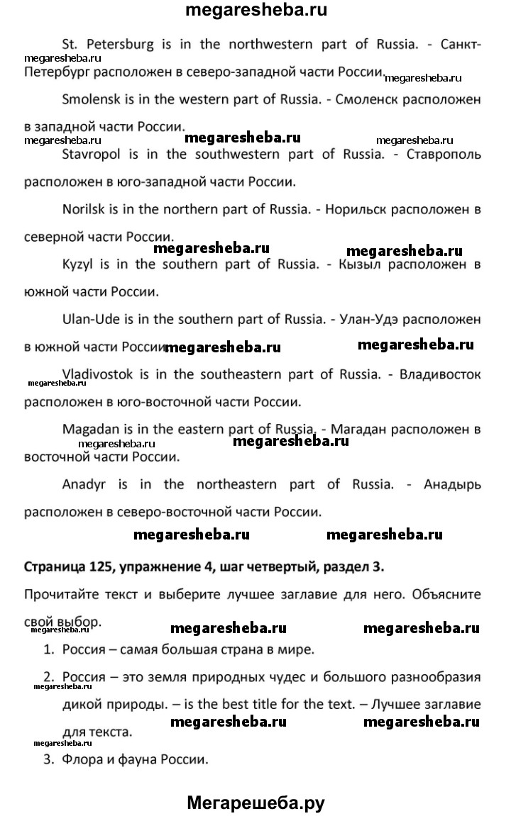 Подробный решебник (ГДЗ) по Английскому языку за 10 (десятый) класс Rainbow - готовый ответ страница - 125. Авторы учебника: Афанасьева, Михеева, Баранова, Базовый уровень. Издательство: Дрофа 2016.