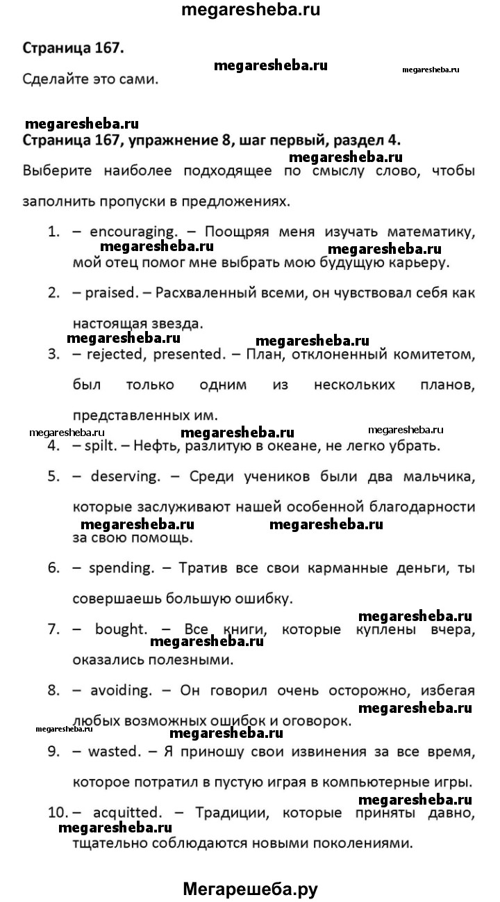 Подробный решебник (ГДЗ) по Английскому языку за 10 (десятый) класс Rainbow - готовый ответ страница - 167. Авторы учебника: Афанасьева, Михеева, Баранова, Базовый уровень. Издательство: Дрофа 2016.