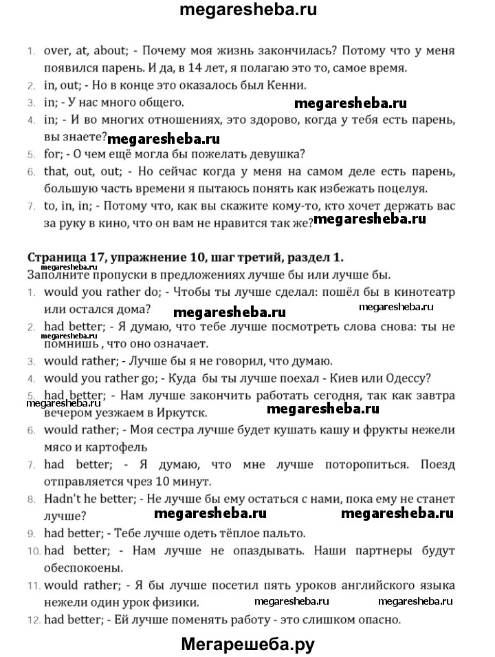 Подробный решебник (ГДЗ) по Английскому языку за 10 (десятый) класс Rainbow - готовый ответ страница - 17. Авторы учебника: Афанасьева, Михеева, Баранова, Базовый уровень. Издательство: Дрофа 2016.