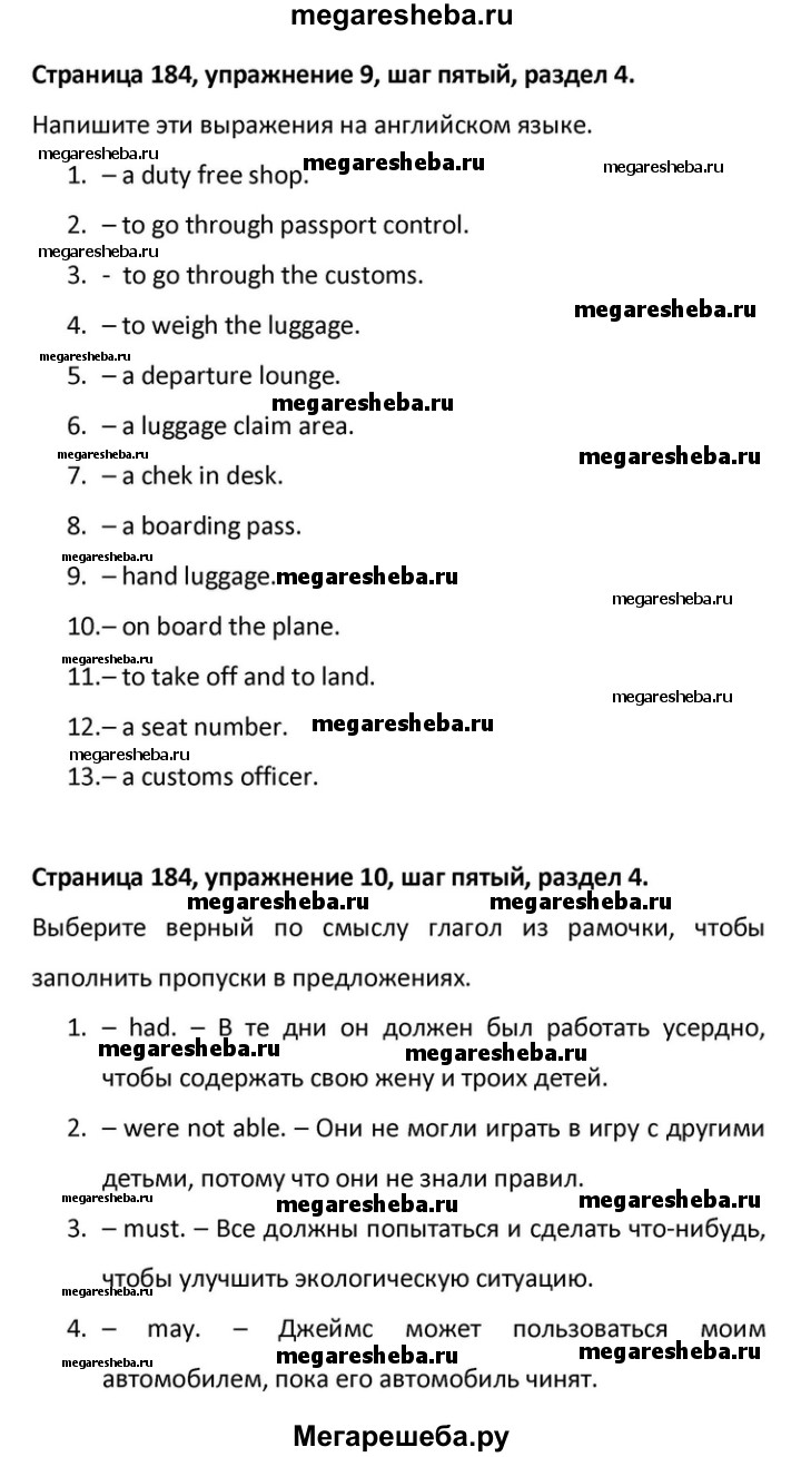Подробный решебник (ГДЗ) по Английскому языку за 10 (десятый) класс Rainbow - готовый ответ страница - 184. Авторы учебника: Афанасьева, Михеева, Баранова, Базовый уровень. Издательство: Дрофа 2016.