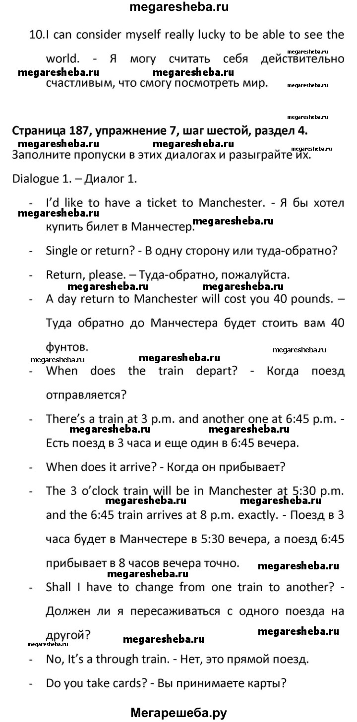 ГДЗ по английскому языку 10 класс Афанасьева Rainbow Базовый уровень страница - 187
