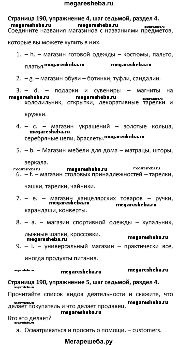 ГДЗ по английскому языку 10 класс Афанасьева Rainbow Базовый уровень страница - 190