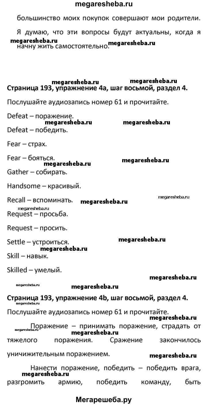 ГДЗ по английскому языку 10 класс Афанасьева Rainbow Базовый уровень страница - 193