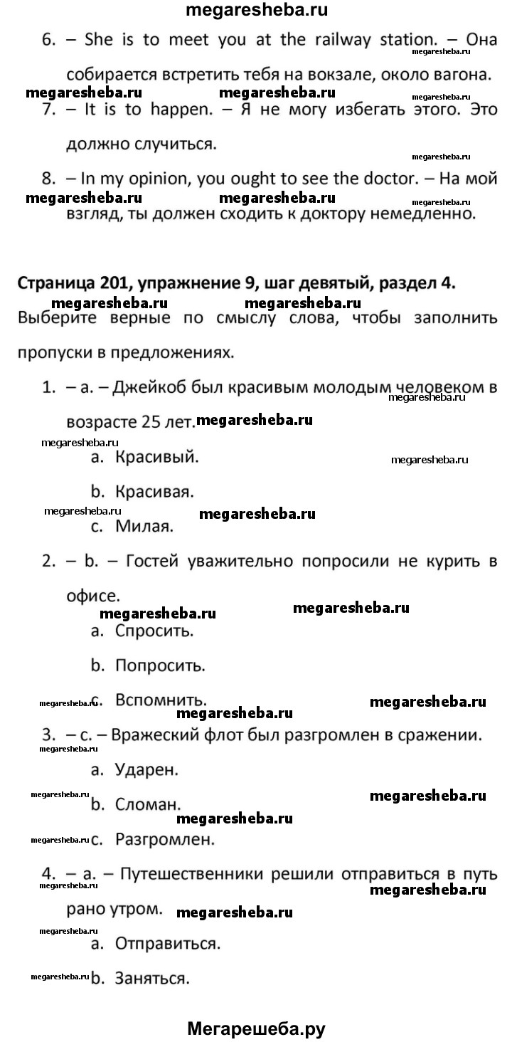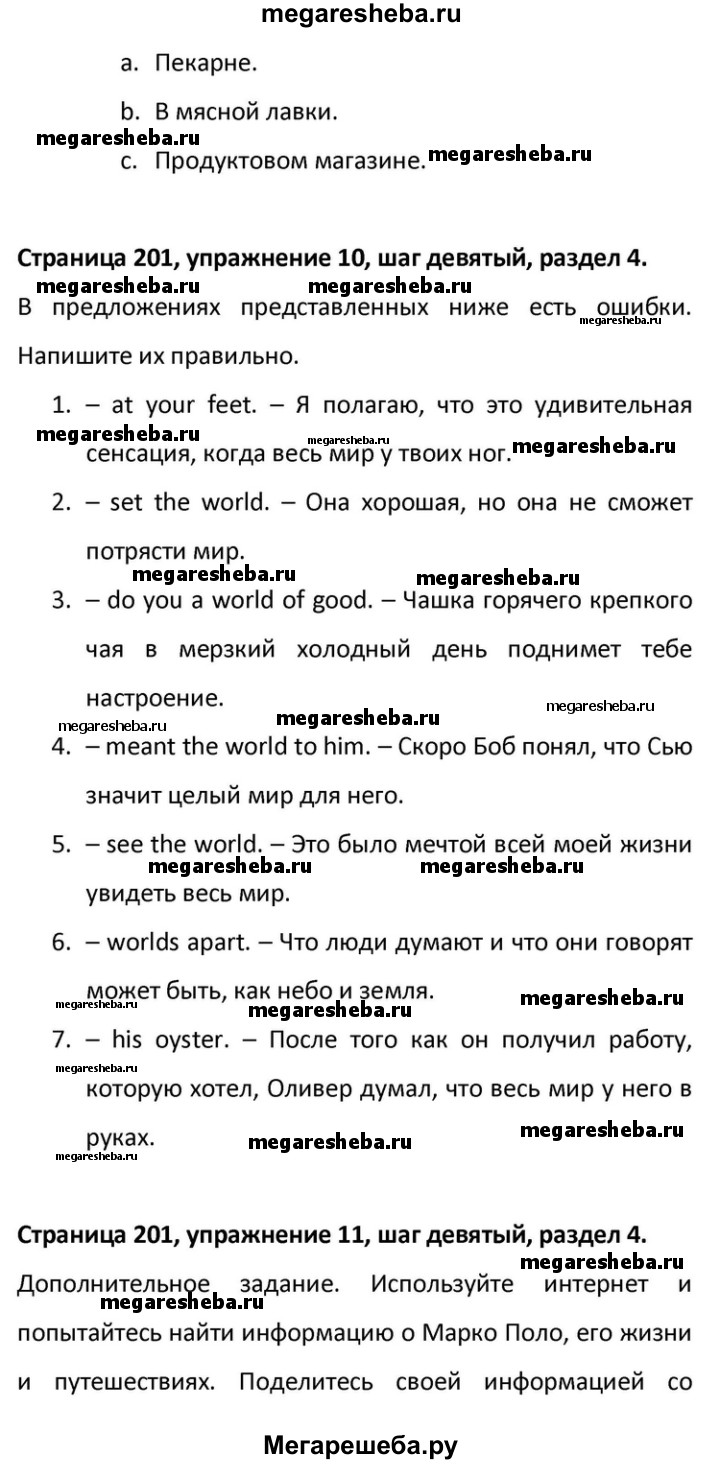 Подробный решебник (ГДЗ) по Английскому языку за 10 (десятый) класс Rainbow - готовый ответ страница - 201. Авторы учебника: Афанасьева, Михеева, Баранова, Базовый уровень. Издательство: Дрофа 2016.