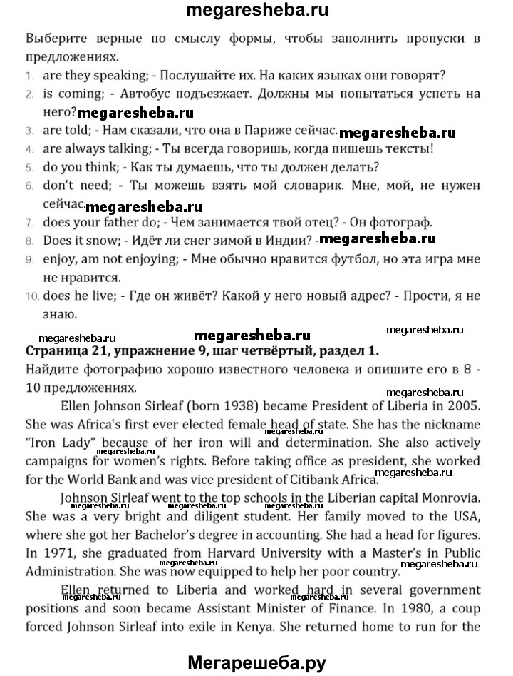 Подробный решебник (ГДЗ) по Английскому языку за 10 (десятый) класс Rainbow - готовый ответ страница - 21. Авторы учебника: Афанасьева, Михеева, Баранова, Базовый уровень. Издательство: Дрофа 2016.