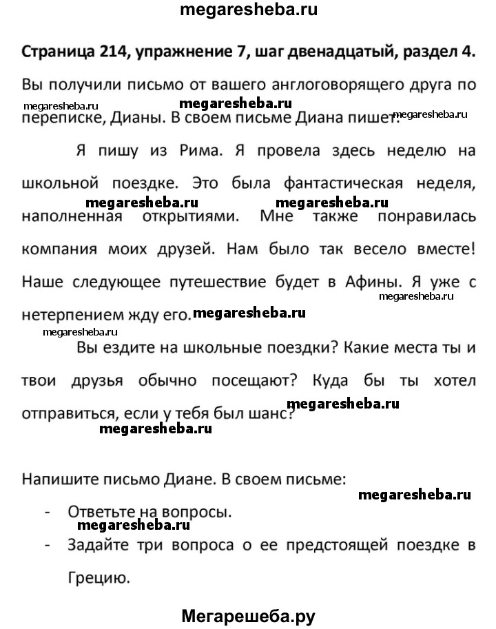 Подробный решебник (ГДЗ) по Английскому языку за 10 (десятый) класс Rainbow - готовый ответ страница - 214. Авторы учебника: Афанасьева, Михеева, Баранова, Базовый уровень. Издательство: Дрофа 2016.