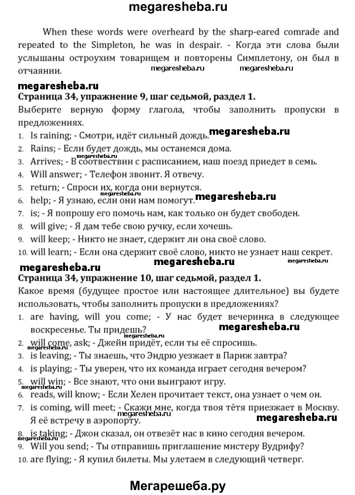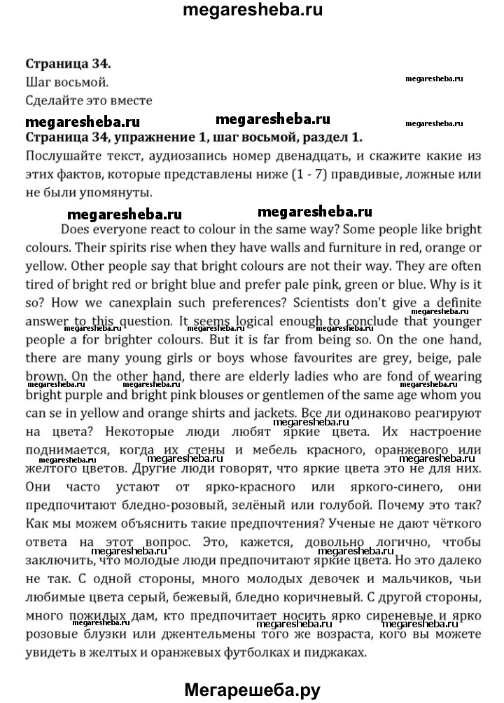 Подробный решебник (ГДЗ) по Английскому языку за 10 (десятый) класс Rainbow - готовый ответ страница - 34. Авторы учебника: Афанасьева, Михеева, Баранова, Базовый уровень. Издательство: Дрофа 2016.