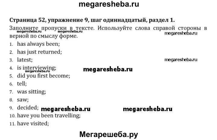 ГДЗ по английскому языку 10 класс Афанасьева Rainbow Базовый уровень страница - 52