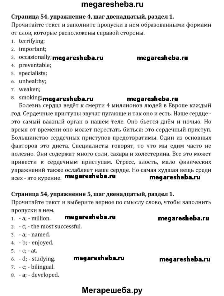 ГДЗ по английскому языку 10 класс Афанасьева Rainbow Базовый уровень страница - 54