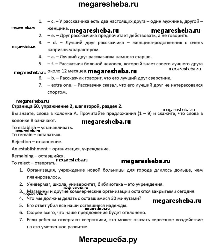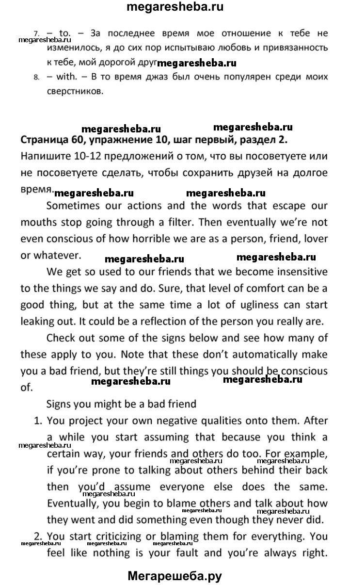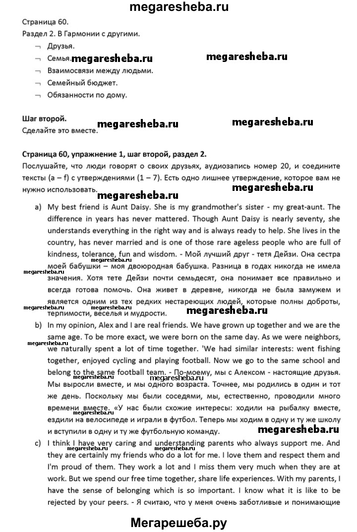 Подробный решебник (ГДЗ) по Английскому языку за 10 (десятый) класс Rainbow - готовый ответ страница - 60. Авторы учебника: Афанасьева, Михеева, Баранова, Базовый уровень. Издательство: Дрофа 2016.