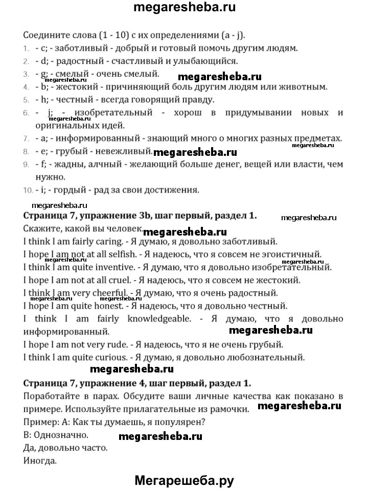 Подробный решебник (ГДЗ) по Английскому языку за 10 (десятый) класс Rainbow - готовый ответ страница - 7. Авторы учебника: Афанасьева, Михеева, Баранова, Базовый уровень. Издательство: Дрофа 2016.