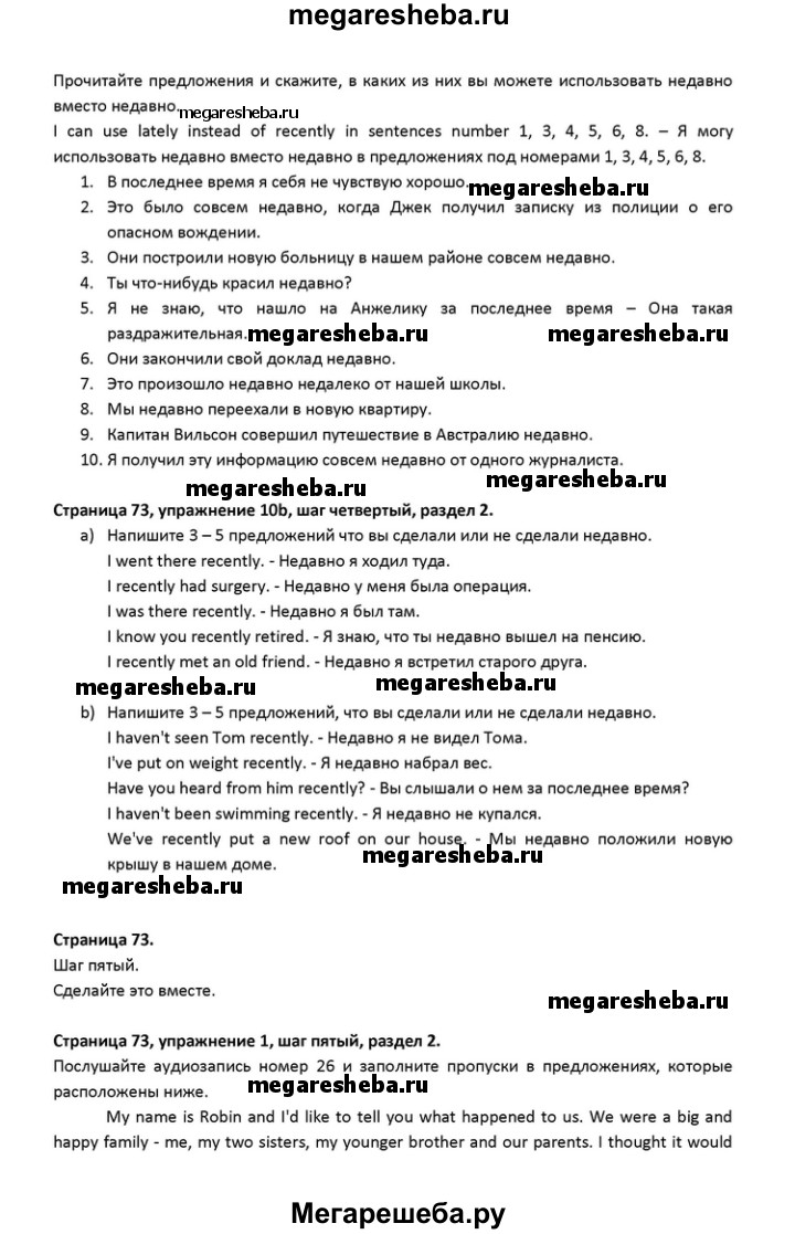 Подробный решебник (ГДЗ) по Английскому языку за 10 (десятый) класс Rainbow - готовый ответ страница - 73. Авторы учебника: Афанасьева, Михеева, Баранова, Базовый уровень. Издательство: Дрофа 2016.