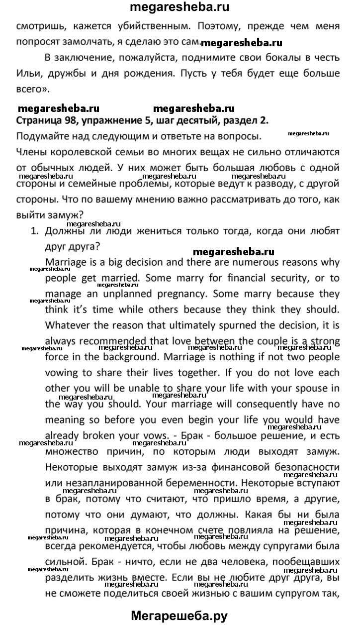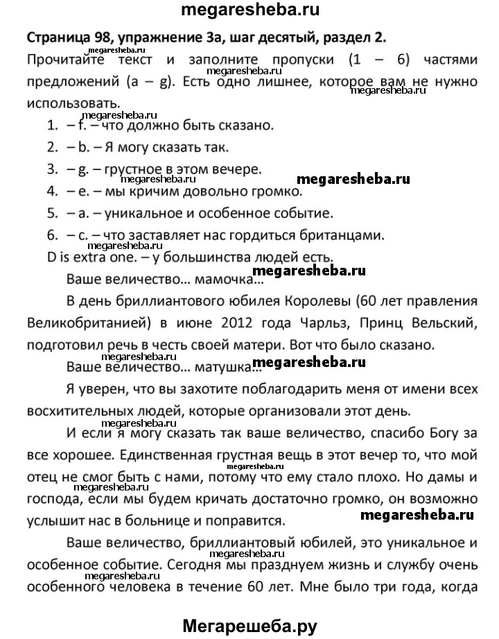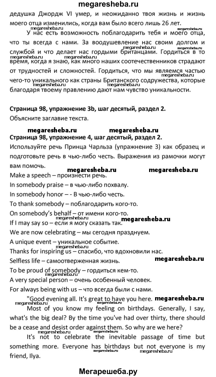 Подробный решебник (ГДЗ) по Английскому языку за 10 (десятый) класс Rainbow - готовый ответ страница - 98. Авторы учебника: Афанасьева, Михеева, Баранова, Базовый уровень. Издательство: Дрофа 2016.