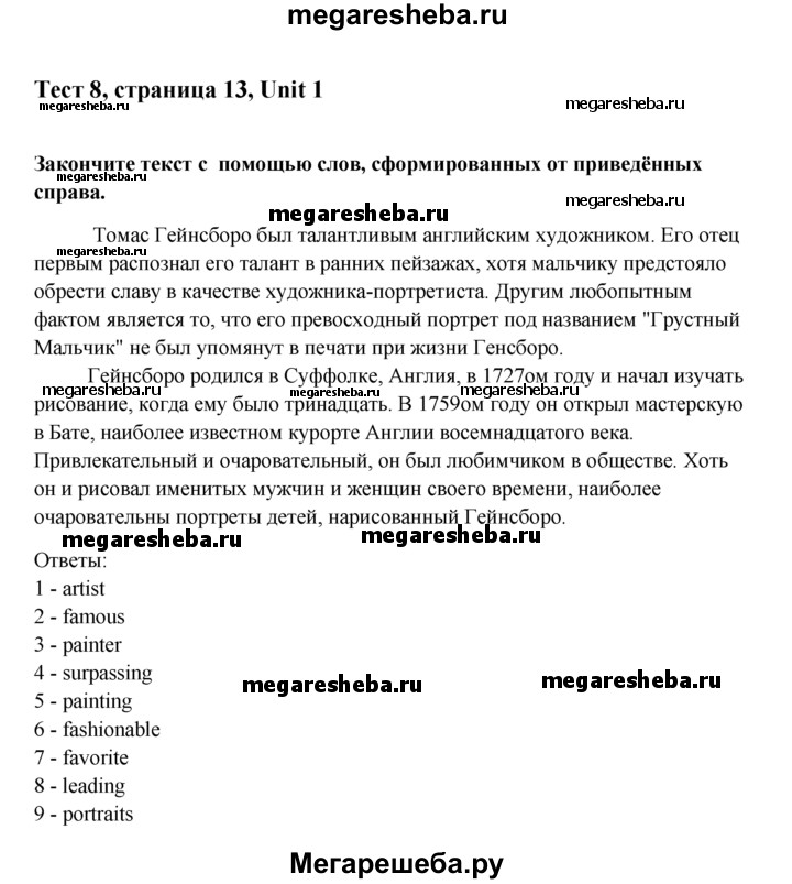 ГДЗ по английскому языку 10 класс Афанасьева Контрольные задания Углубленный уровень unit 1 vocabulary tests - 8
