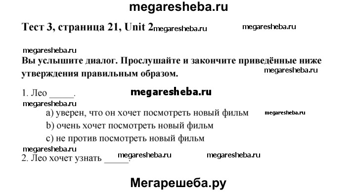 Подробный решебник (ГДЗ) по Английскому языку за 10 (десятый) класс Контрольные задания - готовый ответ unit 2 comprehension tests - 3. Авторы учебника: Афанасьева, Михеева, Углубленный уровень. Издательство: Просвещение 2016.