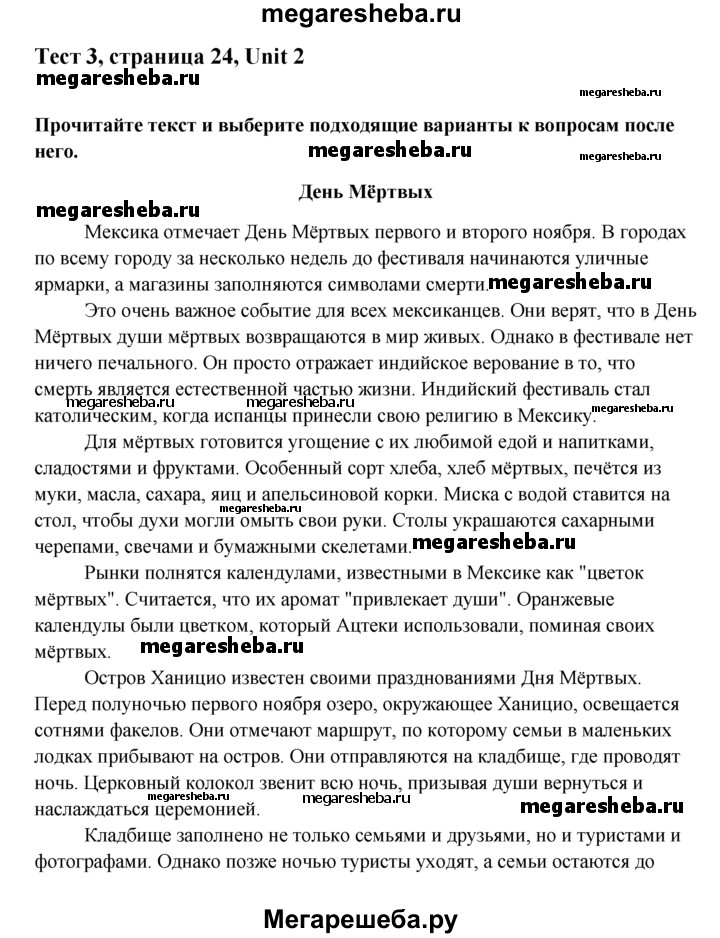 Подробный решебник (ГДЗ) по Английскому языку за 10 (десятый) класс Контрольные задания - готовый ответ unit 2 reading tests - 3. Авторы учебника: Афанасьева, Михеева, Углубленный уровень. Издательство: Просвещение 2016.