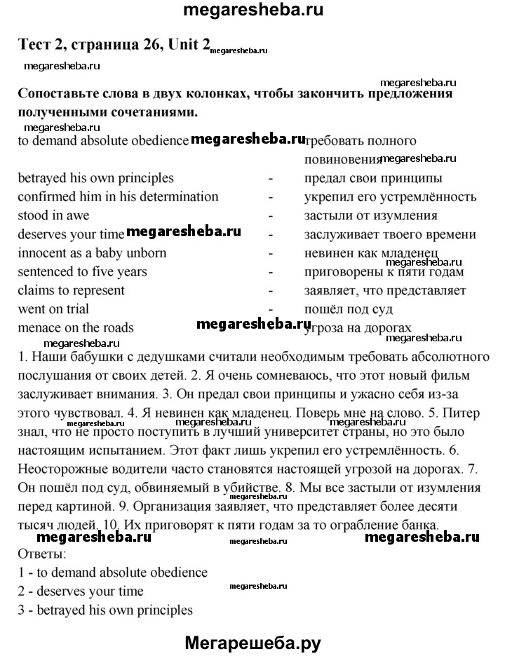 Подробный решебник (ГДЗ) по Английскому языку за 10 (десятый) класс Контрольные задания - готовый ответ unit 2 vocabulary tests - 2. Авторы учебника: Афанасьева, Михеева, Углубленный уровень. Издательство: Просвещение 2016.