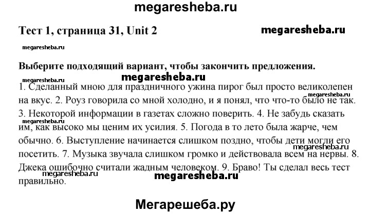 ГДЗ по английскому языку 10 класс Афанасьева Контрольные задания Углубленный уровень unit 2 grammar tests - 1