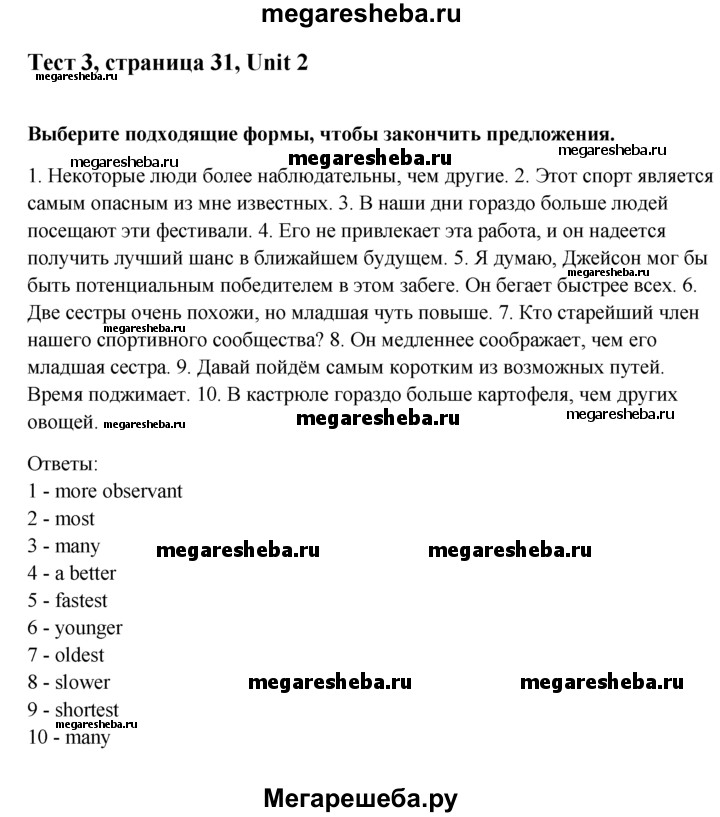 Подробный решебник (ГДЗ) по Английскому языку за 10 (десятый) класс Контрольные задания - готовый ответ unit 2 grammar tests - 3. Авторы учебника: Афанасьева, Михеева, Углубленный уровень. Издательство: Просвещение 2016.