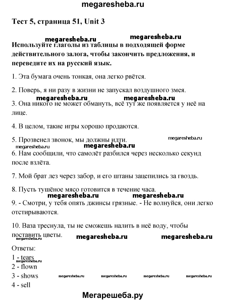 Подробный решебник (ГДЗ) по Английскому языку за 10 (десятый) класс Контрольные задания - готовый ответ unit 3 grammar tests - 5. Авторы учебника: Афанасьева, Михеева, Углубленный уровень. Издательство: Просвещение 2016.