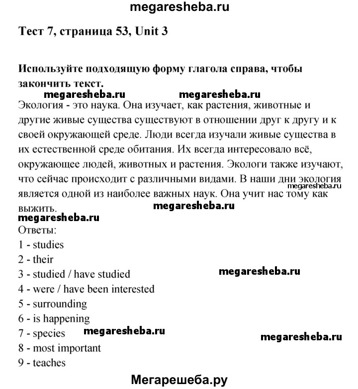 Подробный решебник (ГДЗ) по Английскому языку за 10 (десятый) класс Контрольные задания - готовый ответ unit 3 grammar tests - 7. Авторы учебника: Афанасьева, Михеева, Углубленный уровень. Издательство: Просвещение 2016.