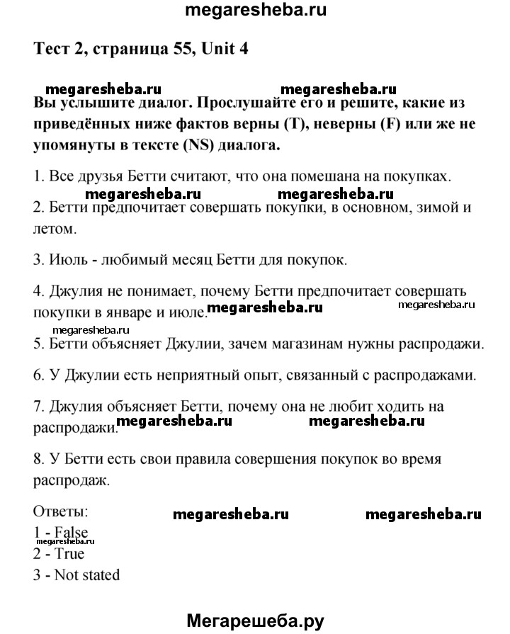 Подробный решебник (ГДЗ) по Английскому языку за 10 (десятый) класс Контрольные задания - готовый ответ unit 4 comprehension tests - 2. Авторы учебника: Афанасьева, Михеева, Углубленный уровень. Издательство: Просвещение 2016.