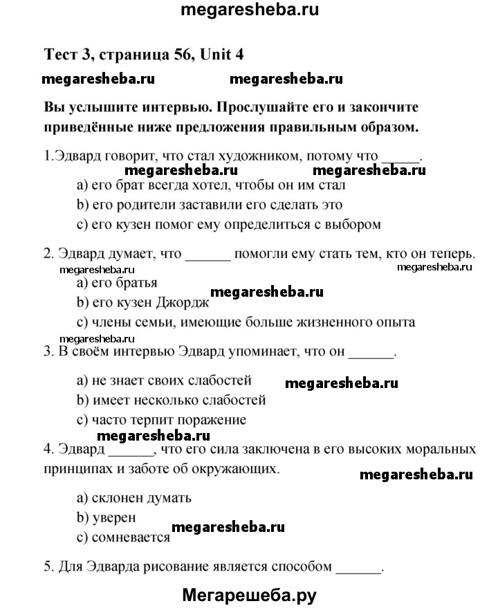 Подробный решебник (ГДЗ) по Английскому языку за 10 (десятый) класс Контрольные задания - готовый ответ unit 4 comprehension tests - 3. Авторы учебника: Афанасьева, Михеева, Углубленный уровень. Издательство: Просвещение 2016.