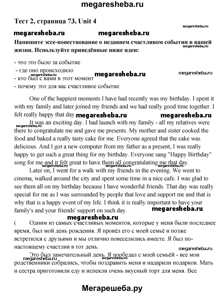 Подробный решебник (ГДЗ) по Английскому языку за 10 (десятый) класс Контрольные задания - готовый ответ unit 4 writing - 2. Авторы учебника: Афанасьева, Михеева, Углубленный уровень. Издательство: Просвещение 2016.
