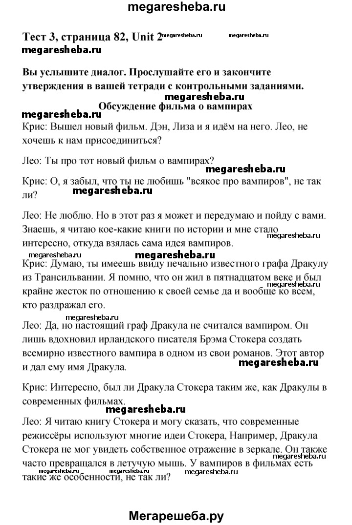 ГДЗ по английскому языку 10 класс Афанасьева Контрольные задания Углубленный уровень scripts unit 2 - 3