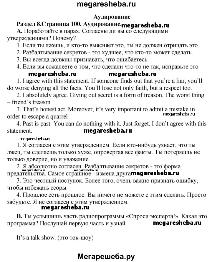 Подробный решебник (ГДЗ) по Английскому языку за 10 (десятый) класс - готовый ответ страница - 100. Авторы учебника: Комарова, Ларионова, Араванис, Вассилакис, Базовый уровень. Издательство: Русское слово 2015.