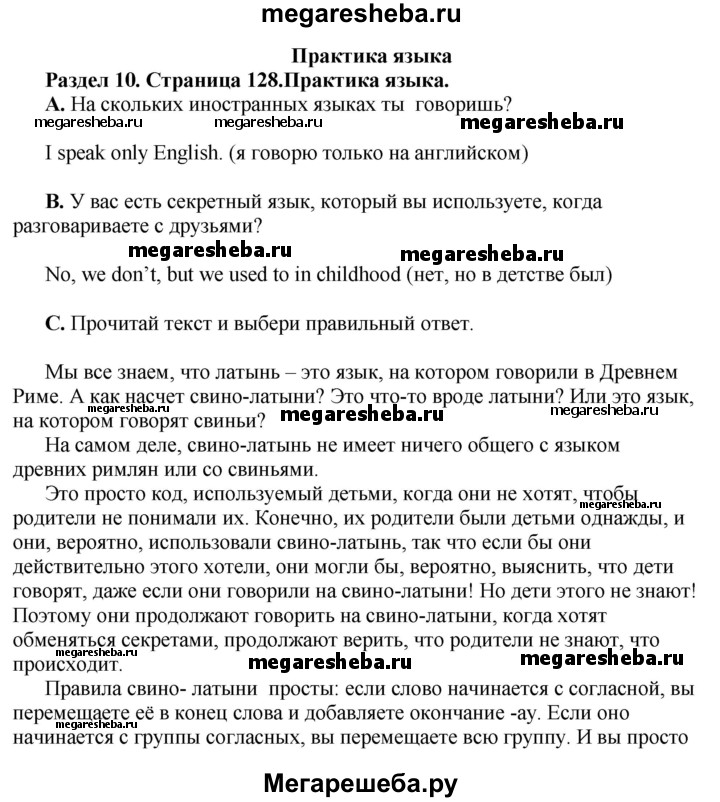 Подробный решебник (ГДЗ) по Английскому языку за 10 (десятый) класс - готовый ответ страница - 128. Авторы учебника: Комарова, Ларионова, Араванис, Вассилакис, Базовый уровень. Издательство: Русское слово 2015.