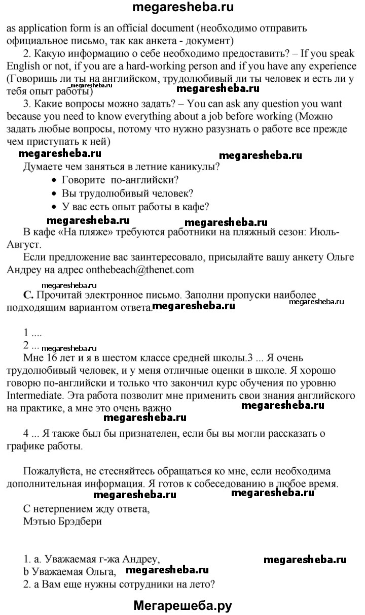 Подробный решебник (ГДЗ) по Английскому языку за 10 (десятый) класс - готовый ответ страница - 42-43. Авторы учебника: Комарова, Ларионова, Араванис, Вассилакис, Базовый уровень. Издательство: Русское слово 2015.
