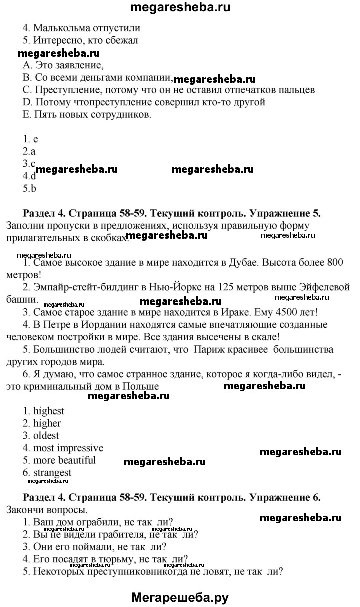 ГДЗ по английскому языку 10 класс Комарова Базовый уровень страница - 58-59