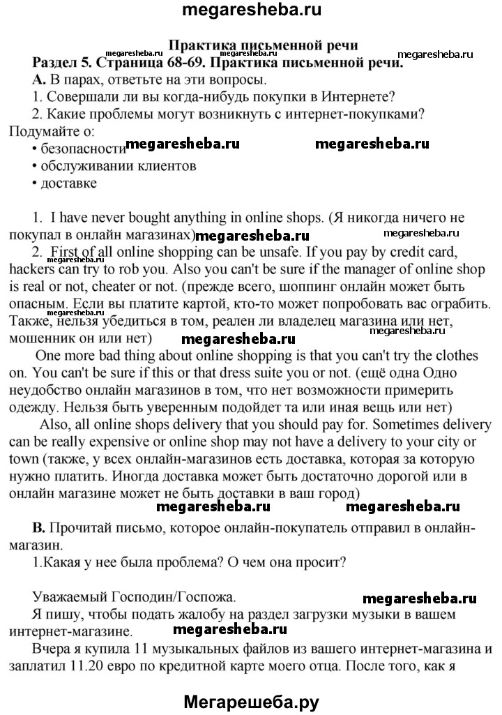 Подробный решебник (ГДЗ) по Английскому языку за 10 (десятый) класс - готовый ответ страница - 68-69. Авторы учебника: Комарова, Ларионова, Араванис, Вассилакис, Базовый уровень. Издательство: Русское слово 2015.