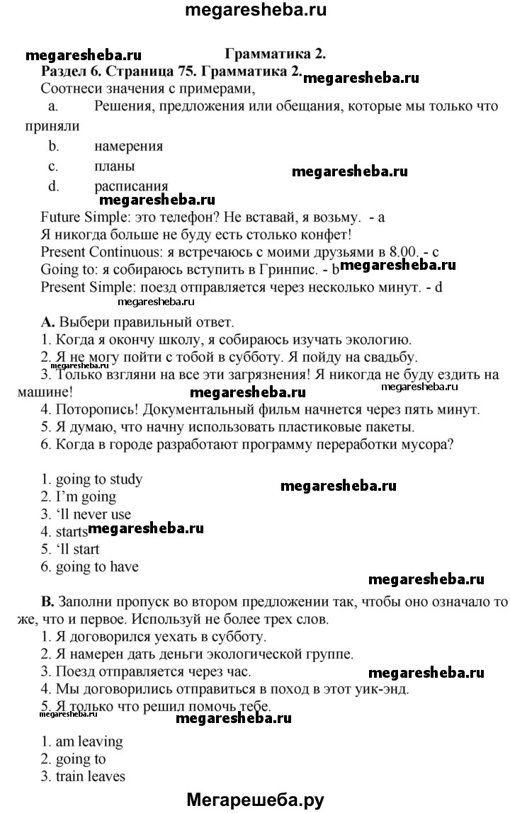 Подробный решебник (ГДЗ) по Английскому языку за 10 (десятый) класс - готовый ответ страница - 75. Авторы учебника: Комарова, Ларионова, Араванис, Вассилакис, Базовый уровень. Издательство: Русское слово 2015.