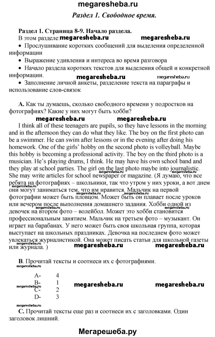 ГДЗ по английскому языку 10 класс Комарова Базовый уровень страница - 8-9